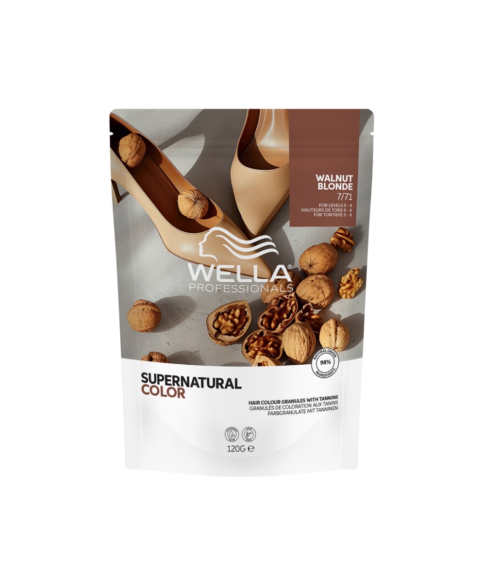 Supernatural Color to innowacyjna koloryzacja oparta na taninach – naturalnych składnikach, które wiążą się z włóknami keratynowymi, poprawiając strukturę włosa i nadając mu zdrowy wygląd. Dzięki opatentowanej, granulowanej formule aktywowanej wodą produkt zapewnia łatwe mieszanie, kremową konsystencję i komfortową aplikację.