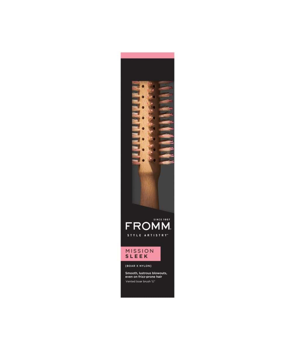 Niezwykle gładkie i lśniące efekty na wszystkich rodzajach włosów dzięki szczotce Mission Sleek. Antystatyczne kolce oraz wentylowany korpus gwarantują perfekcyjne suszenie, które sprawia, że włosy stają się gładkie, miękkie i sprężyste. Naturalne włosie dzika rozprowadza naturalne sebum, nadając pasmom lśniący wygląd. Ceramiczne kolce zapobiegają puszeniu się włosów, a otwarty korpus umożliwia błyskawiczne suszenie. Trzonek wykonany z drewna bukowego sprawia, że szczotka trzyma się pewnie nawet w mokrych dłoniach.