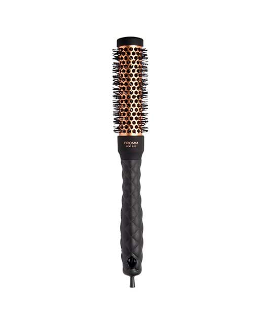 Korpus miedziano-ceramiczny szczotki NBB018 nagrzewa się 3 razy szybciej niż najbardziej popularna szczotka miedziana. Zatrzymuje i równomiernie przewodzi wysoką temperaturę bez gorących punktów. Jony ujemne rozbijają cząsteczki wody, co przyspiesza suszenie. Technologia podwójnej jonizacji wygładza spuszone włosy i niesforne kosmyki. Wypolerowane faliste włoski zapewniają mocne naprężenie, ale są delikatne dla włosów i skóry głowy, odporne na wysoką temperaturę do ok. 200°C. Miękki trzonek uformowany metodą podwójnego wtrysku płynnie się obraca i łatwo go chwytać nawet mokrymi rękami. Zapewnia wygodne użytkowanie przez cały dzień dzięki naturalnej pozycji dla ręki i lekkiej konstrukcji. Rozmiar: 2.5 cm.