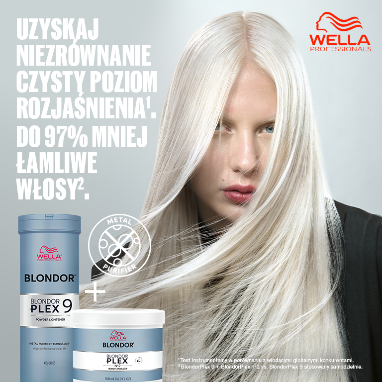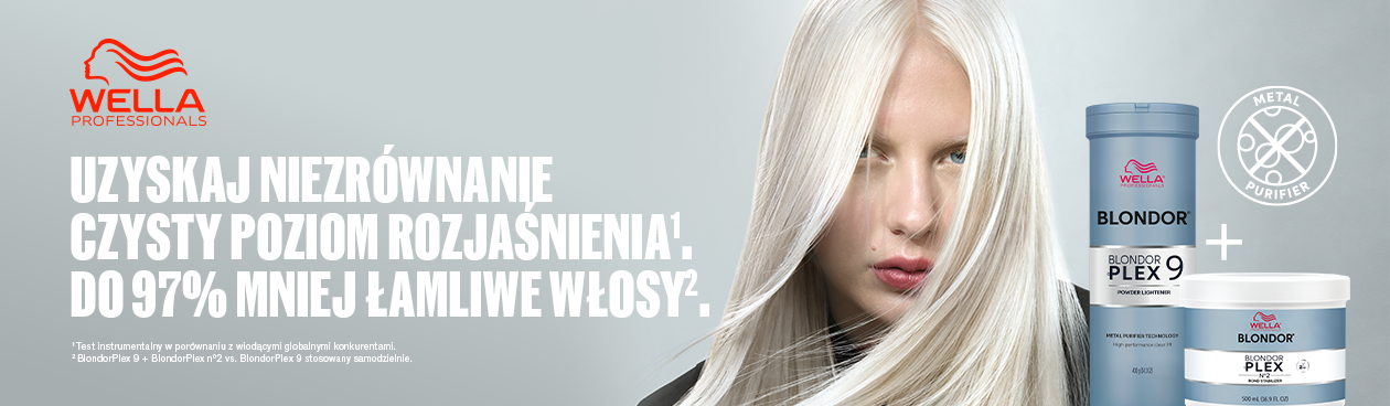 Dlatego teraz marka Wella Professionals oddaje w Wasze ręce nowość: znany i uwielbiany Blondorplex 9, wzbogacony o technologię Metal Purifier. Odkryj niezrównaną czystość rozjaśniania i do 97% mniej łamliwych włosów.