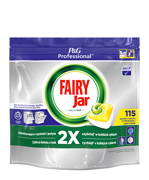 Fairy All In One 115szt. - Profesjonalne kapsułki przeznaczone do codziennego, profesjonalnego mycia naczyń w zmywarkach.