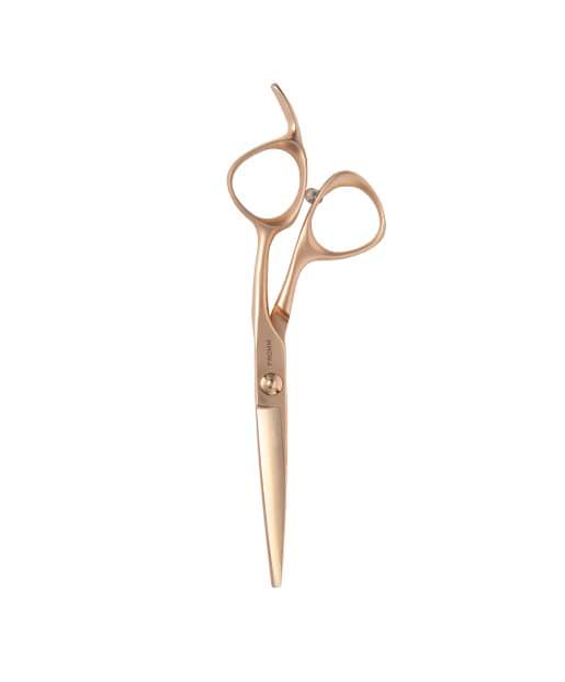 Luksusowe, jednoelementowe nożyczki F1024 Defy Gold w złotym odcieniu z matowym wykończeniem. Jednoelementowy design oraz ostre jak brzytwa ostrza umożliwiają korzystanie z najbardziej innowacyjnych technik. Wypukłe otrze o wklęsłych powierzchniach wewnętrznych ostrzone ręcznie metodą hollow ground. Stal japońska jakości premium. Niezwykle ergonomiczny przesunięty uchwyt typu offset (asymetryczny). Rozmiar: 5.75.