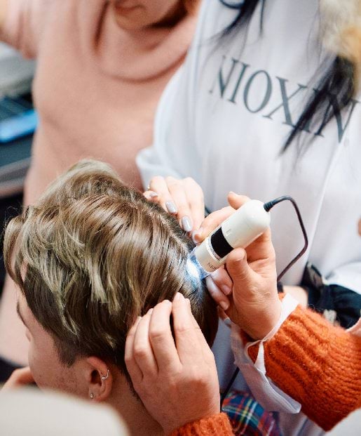 - rozszerzona diagnoza skóry głowy, praca z kamerą trychologiczną
